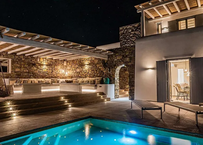 La Villa Iakinthos by Mykonian Kazarte Kalafatis está situada a tan solo 1 km de la Playa Kalafatis, lo que permite acceder a varios puntos turísticos cercanos.